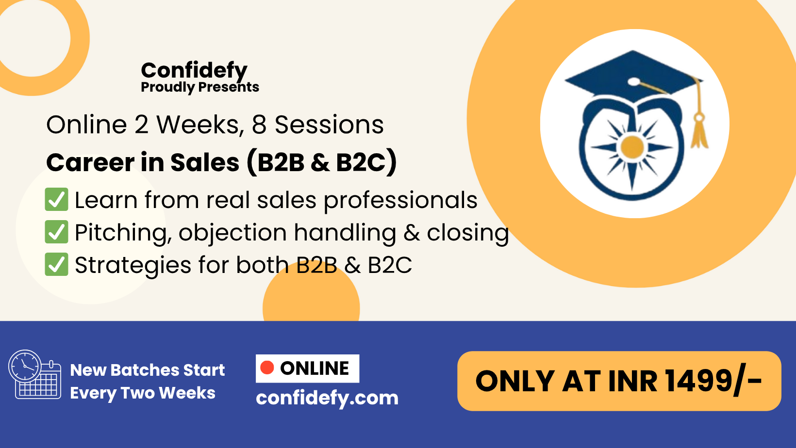 • To equip learners with real-world sales skills across both B2B and B2C domains including pitching, objection handling, client communication, and relationship building- to help them close deals with confidence.